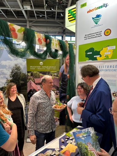 Informative Vorträge von Dr. Lugert und Herrn Roch boten spannende Einblicke in die aktuelle Entwicklung der Teichwirtschaft und die Arbeit des Biosphärenreservats „Oberlausitzer Heide- und Teichlandschaft“. Die Gastgeber präsentierten zudem ihre innovativen Konzepte zu nachhaltiger Energieversorgung und regionaler Gastronomie.